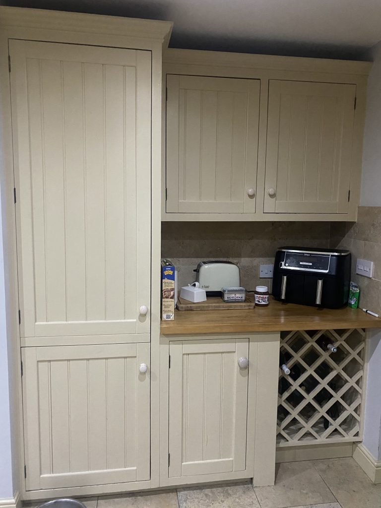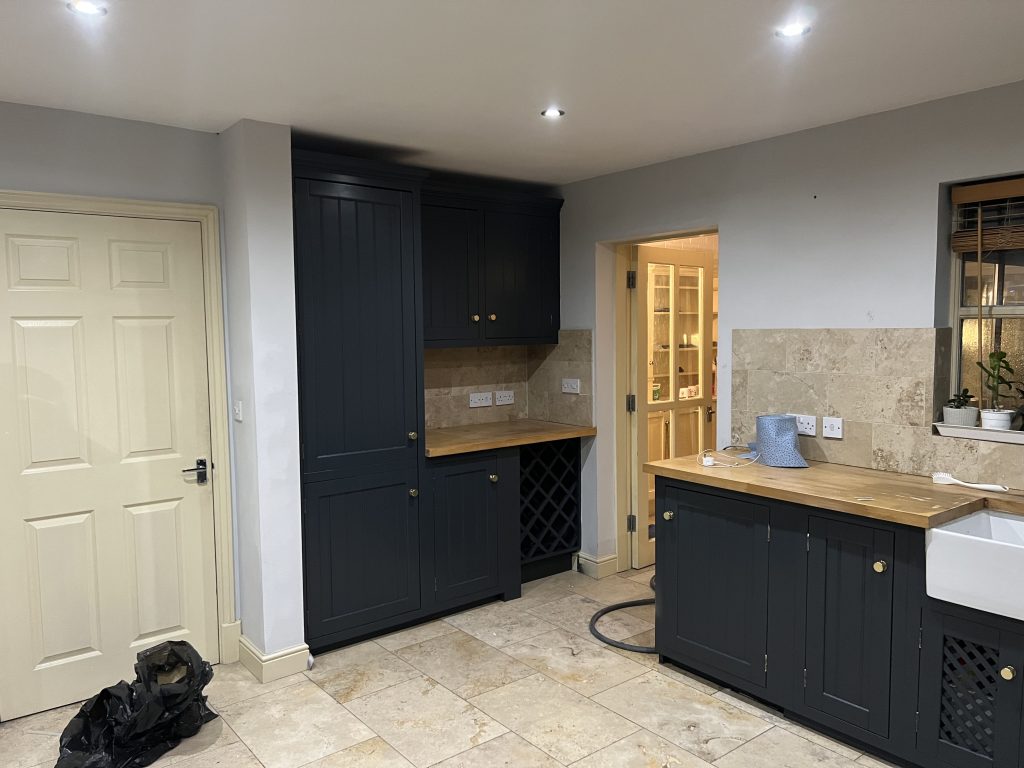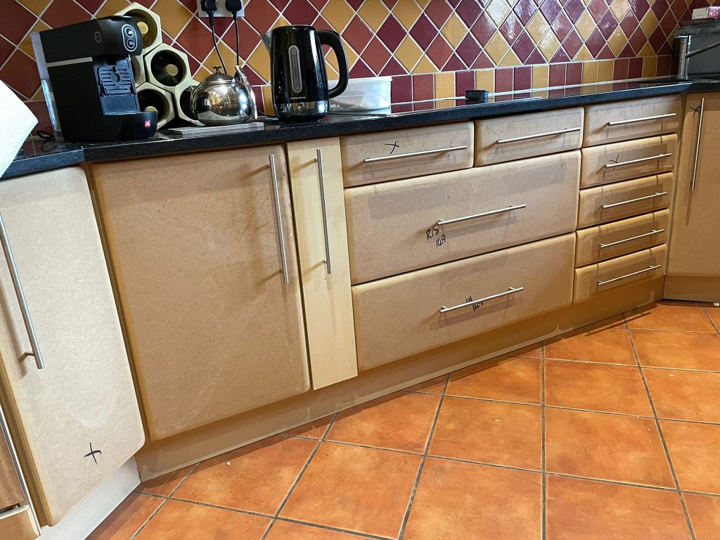 We always remove doors and drawer fronts to spray in our dedicated spray booth, ensuring both sides of the doors are sprayed and that all parts of the carcass are coated too.